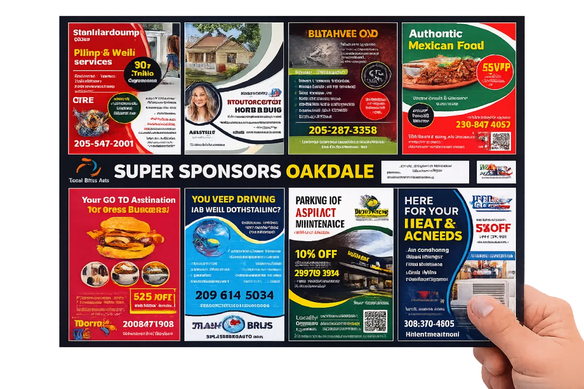 Our 9x12 postcard is a large-format, double-sided mailer that features a curated set of local businesses on one premium card. Instead of paying for a solo postcard, you share the space—and the cost—with other non-competing advertisers.